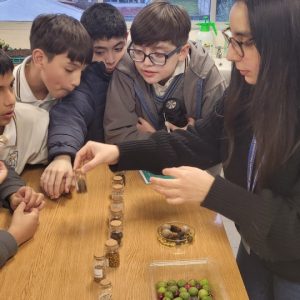 Durante la actividad, los estudiantes realizaron un recorrido guiado por diversas especies nativas de árboles, arbustos, flores y plantas trepadoras, profundizando en su identificación y principales características. La jornada culminó con una experiencia práctica de reconocimiento de semillas, donde los alumnos pudieron observar con asombro las diversas formas, tamaños y mecanismos de propagación de estas, comprendiendo que no todas las semillas germinan de la misma forma ni requieren las mismas condiciones para su desarrollo.
