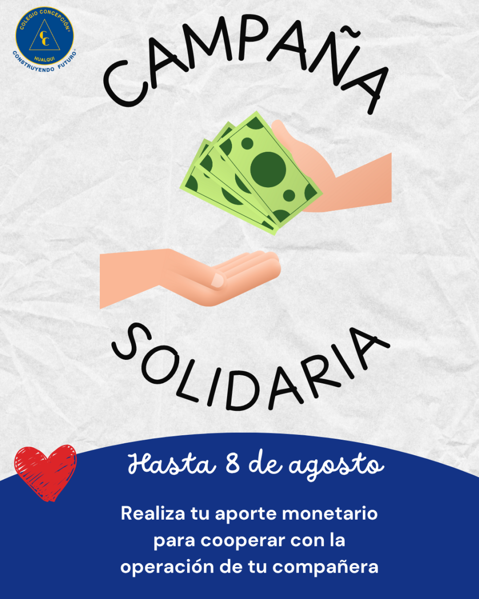 El Colegio Concepción Hualqui ha iniciado una campaña solidaria con el objetivo de apoyar a una de nuestras estudiantes de prekínder quien debe someterse a una operación quirúrgica. Esta iniciativa nace desde el compromiso de nuestra comunidad educativa con los valores de la solidaridad, empatía y compañerismo. La campaña tiene como objetivo reunir fondos que contribuyan a cubrir los gastos médicos asociados a la intervención y su posterior recuperación.