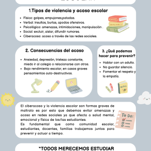 El afiche busca sensibilizar sobre la importancia de reconocer y prevenir cualquier tipo de comportamiento agresivo o discriminatorio que pueda afectar el bienestar de nuestros y nuestras estudiantes. Esta actividad forma parte de nuestro compromiso institucional con la formación integral de los y las estudiantes, fomentando el diálogo, el respeto y la empatía en la vida escolar diaria.